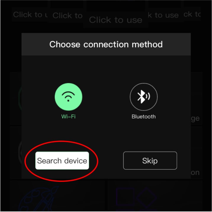 Open the app and choose Wi-Fi connection method, then tap “Search Device”. Allow the app to use your location and that’s it!