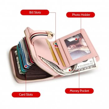 Versatile Storage: Equipped with multiple pockets and compartments, including a passcard pocket, note compartment, and a zippered pocket for coins.