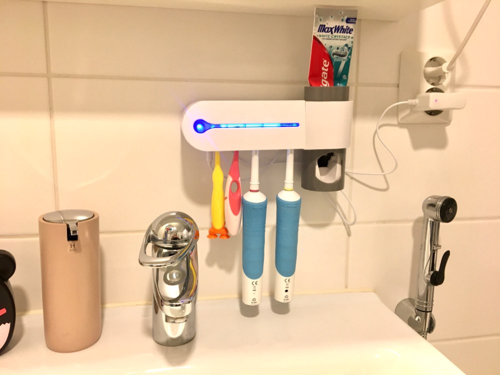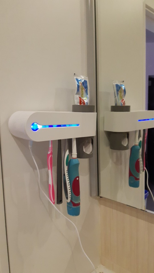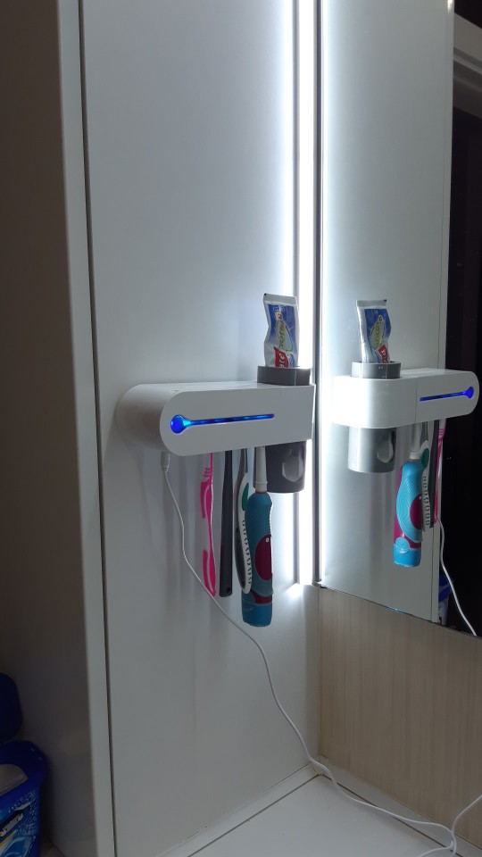 It is a magnificent device because it helps me keep the whole family’s toothbrushes tidy and clean. It is very easy to install on the bathroom wall, it should only be plugged in to start working and disinfect and sterilize up to 4 toothbrushes at the same time using an ultraviolet light