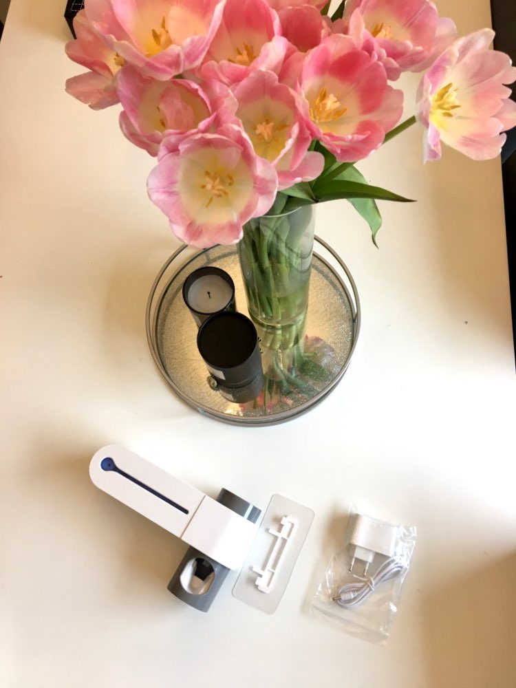 It’s a rather simple product. It holds your toothbrush. Detects when lids closed, and you manually press the button to disinfect. Battery seems to last about 2 weeks or so. It could use a bigger battery, but for those with a close by plug, this isn’t really an issue. Only other thing that would be nice is a sensor to detect when you leave the room so that it can start disinfecting.