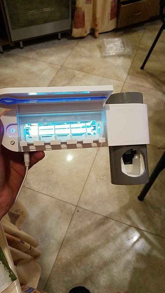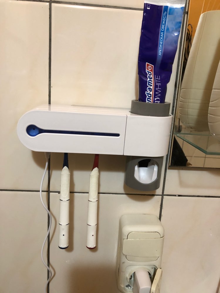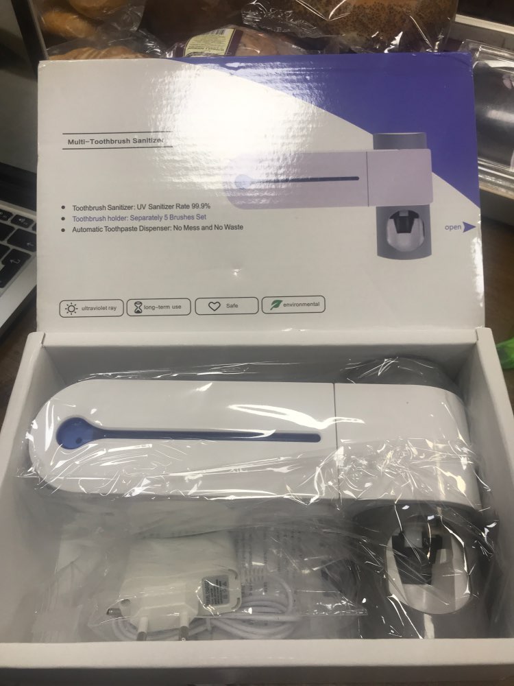 Thank you very much! Fully complies with the description. Came without a box, but in a powerful package. Everything works. As in reviews-after the work of the ultraviolet there is a characteristic smell. Plastic to the touch pleasant. Perfect holder for 5 brushes and pulling paste. It’s true, it’s necessary to set up the tube. Very nice looks in the bathroom. Wire with European plug-short-90 cm. I definitely recommend the store and the goods