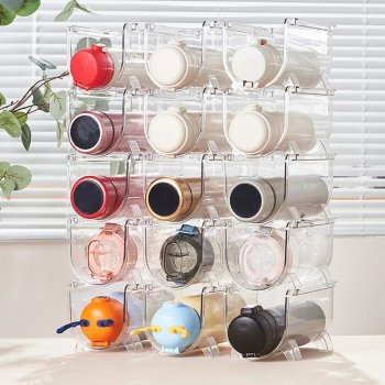 Are you tired of cluttered countertops and overstuffed cabinets? Say goodbye to disorganization and hello to pristine kitchen harmony with our Stackable Transparent Water Bottle Storage Organizer. Crafted to create an immaculate space, this eco-friendly solution is not only a sight for sore eyes but a testament to practicality. Whether it’s your kitchen, office, or classroom, our versatile organizer transforms chaos into order with a clear view.