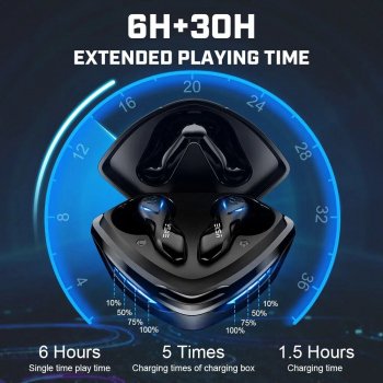 - Extended Play Time: Enjoy up to 6 hours of non-stop playback with an additional 30 hours from the charging case.