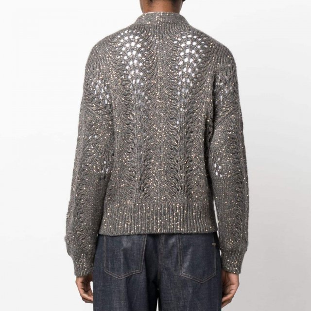 Introducing our Women’s Sequins Hollow Cashmere Blend Cardigan Sweater – the perfect blend of style and comfort for the Autumn/Winter season. Crafted with precision from a luxurious mix of 58% cashmere, 23% polyamide, and 19% polyester, this V-neck single-breasted cardigan is a must-have addition to your collection.